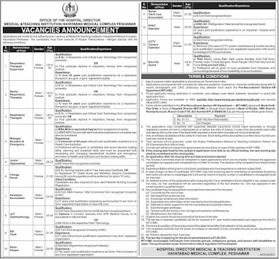 Address: Pre-Recruitment Section, HR Department, Medical Teaching Institution MTI, Hayatabad Medical Complex HMC, Peshawar