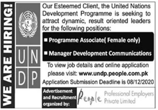 See here, Latest United international locations improvement programme jobs United Nations Development Programme Offers Vacancies for the Positions of Programme Associate, Manager Development Communications. These job posts are to be based totally Punjab Lahore. The advert of Jobs are posted in The main Newspaper. The Last Date to Apply is January 22, 2021. For More Details About Programme Associate, Manager Development Communications See job notification for applicable experience, qualification and age restrict information.
